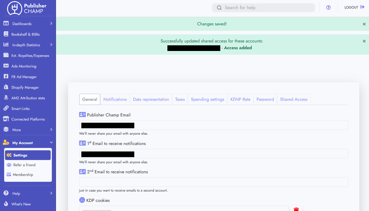 Just as it sounds, Shared Access allows you to share access to your account's data to one, or multiple other accounts. You can choose to grant full access to your secondary accounts (the accounts you share access with) allowing them to read and edit shared data, or read-only access. You can further restrict the access granted to your secondary accounts by a selection of author names.